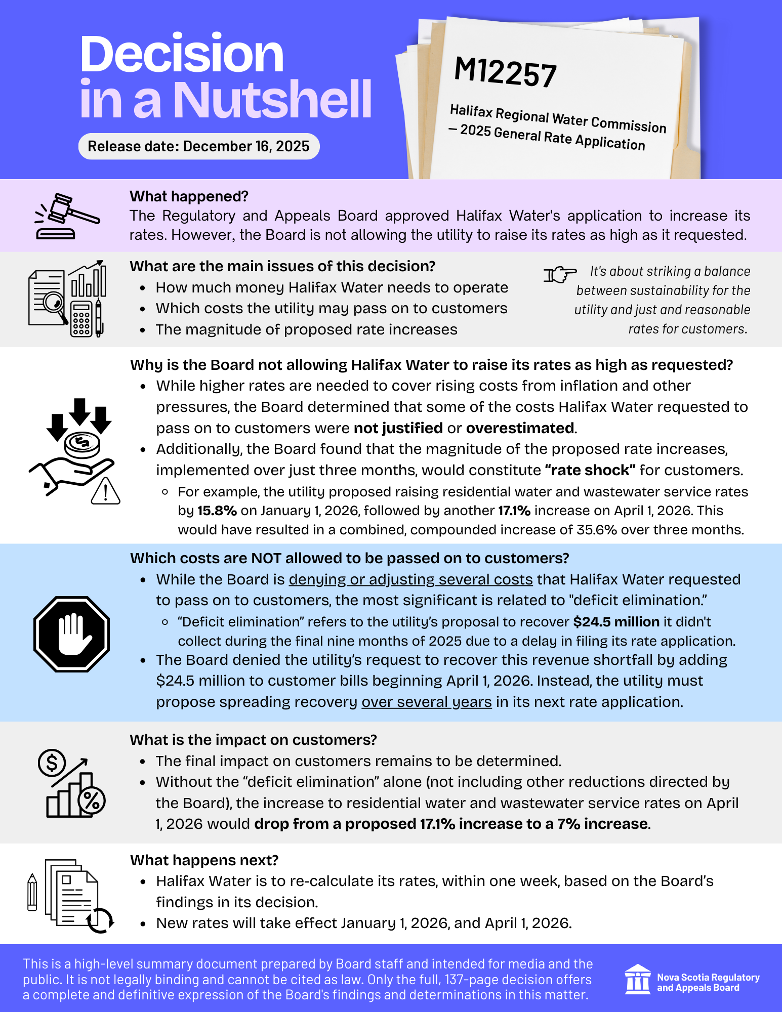 December 16, 2025 — Today, the Regulatory and Appeals Board issued its decision on Halifax Water's application to increase water service rates.